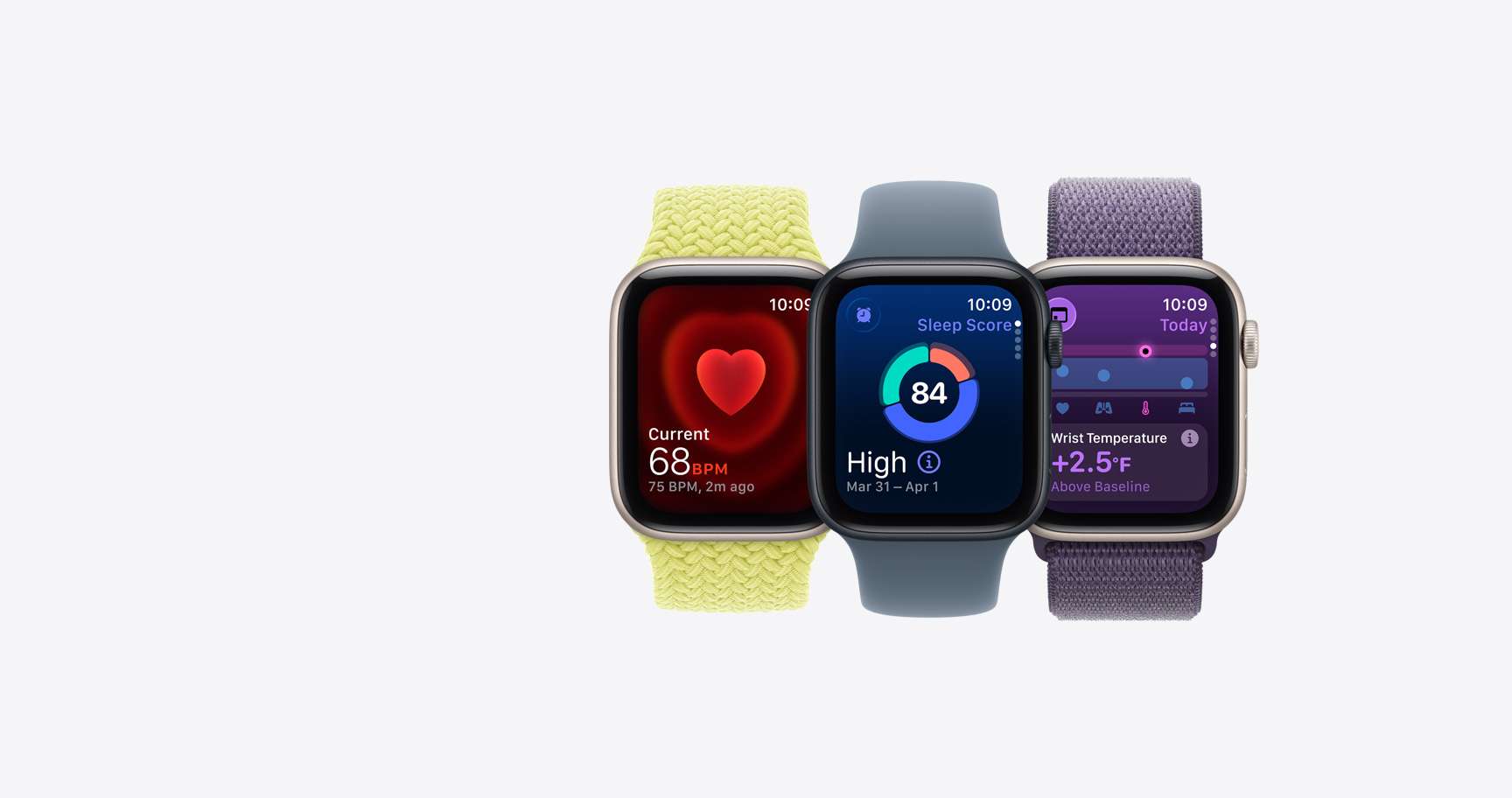 Quickly see your overnight health data right on your wrist — including heart rate, respiratory rate, wrist temperature, and sleep duration — and get notified if your metrics are ever outside your typical range.8