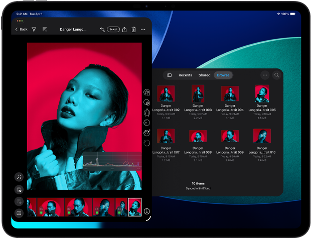 Du kannst Smart HDR Bilder und bis zu 4K ProRes Video aufnehmen und bearbeiten, grössere 3D Szenen öffnen und editieren und komplexere KI Modelle ausführen, alles mit Pro Apps.
